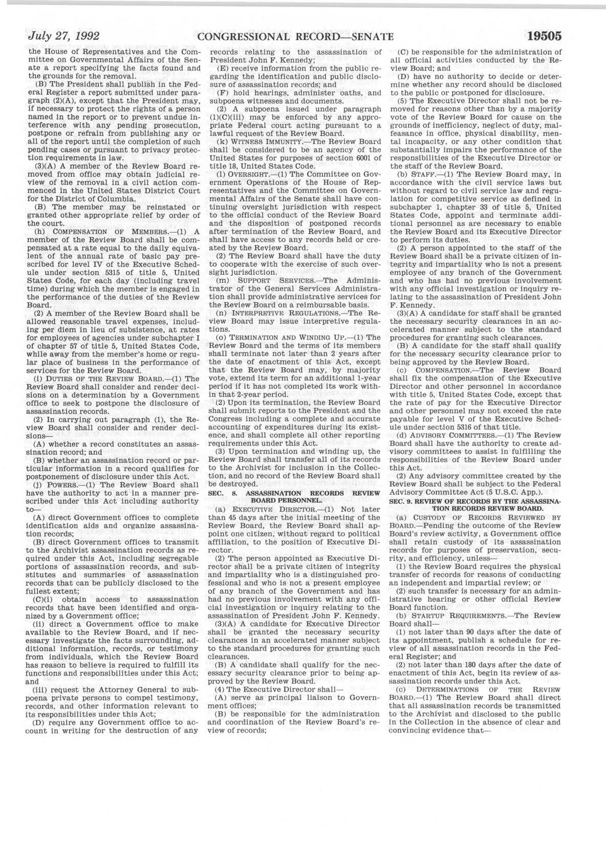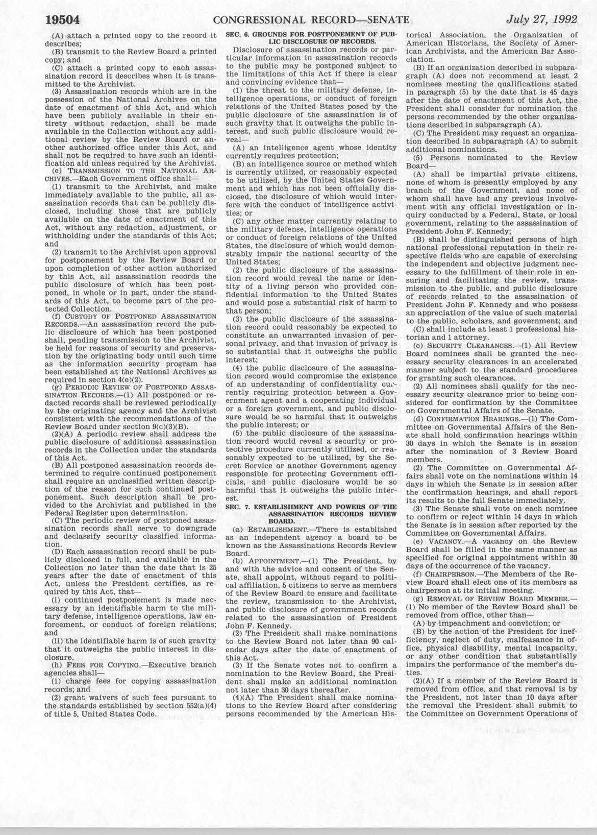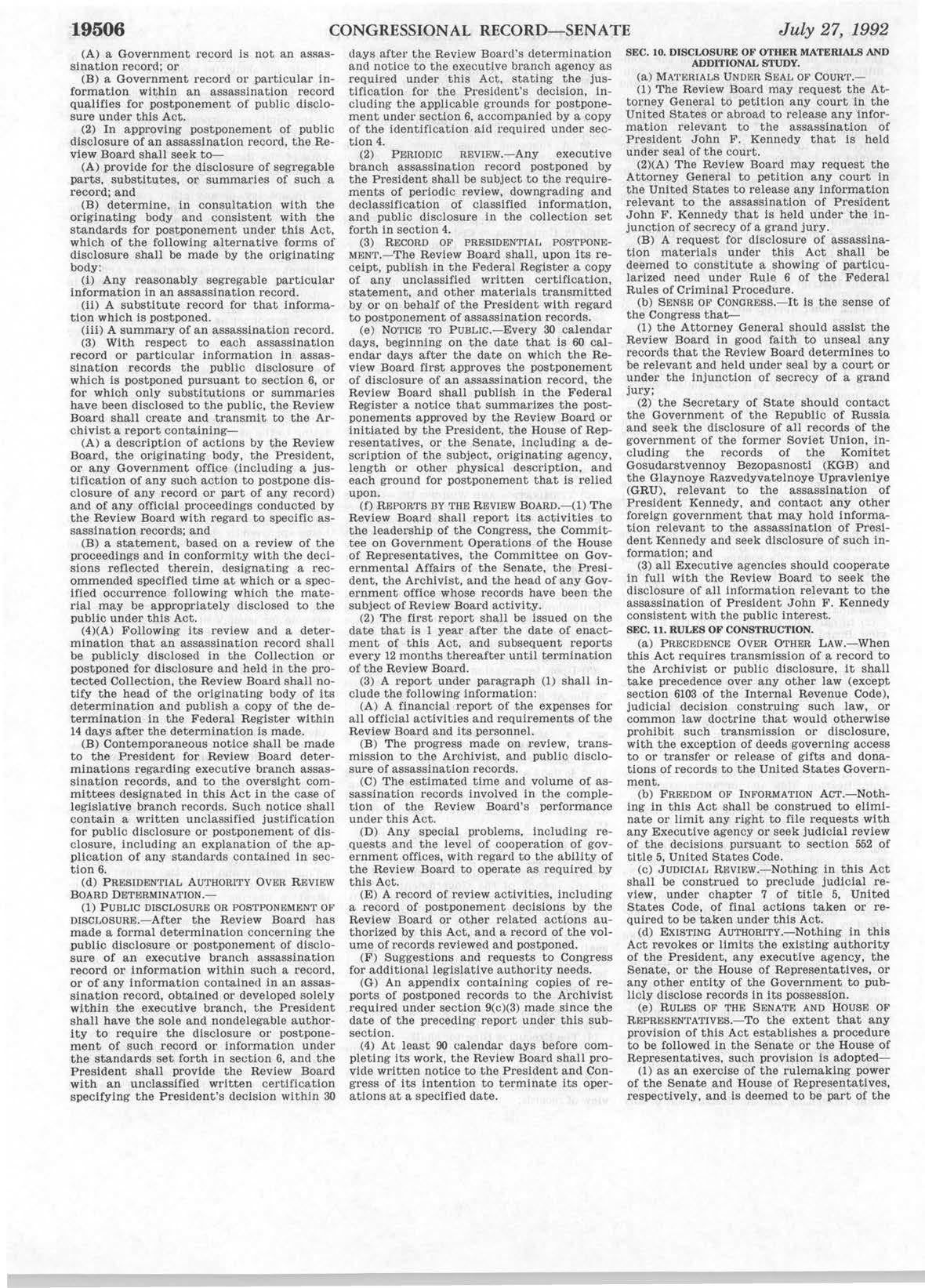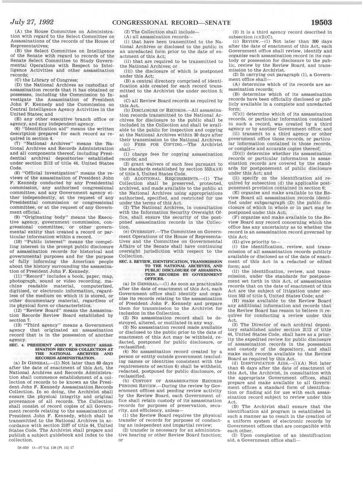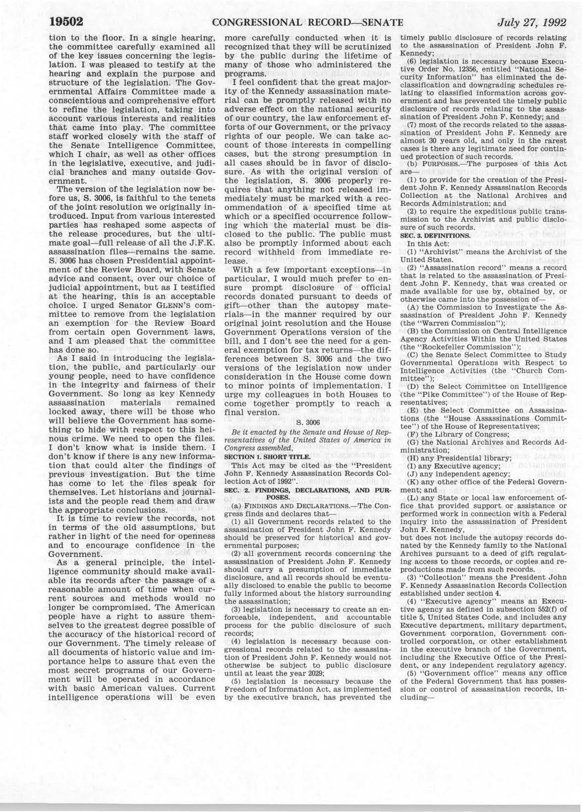 At the bottom of the JFK Act is a reference to the legislative history.